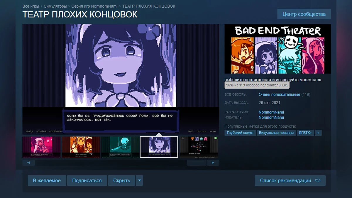 На днях в Steam вышла необычная игра под названием Bad End Theater («Театр плохих концовок»), которая быстро привлекла внимание геймеров, в результате чего получила 96% положительных отзывов и попала в категорию «Популярных новинок».