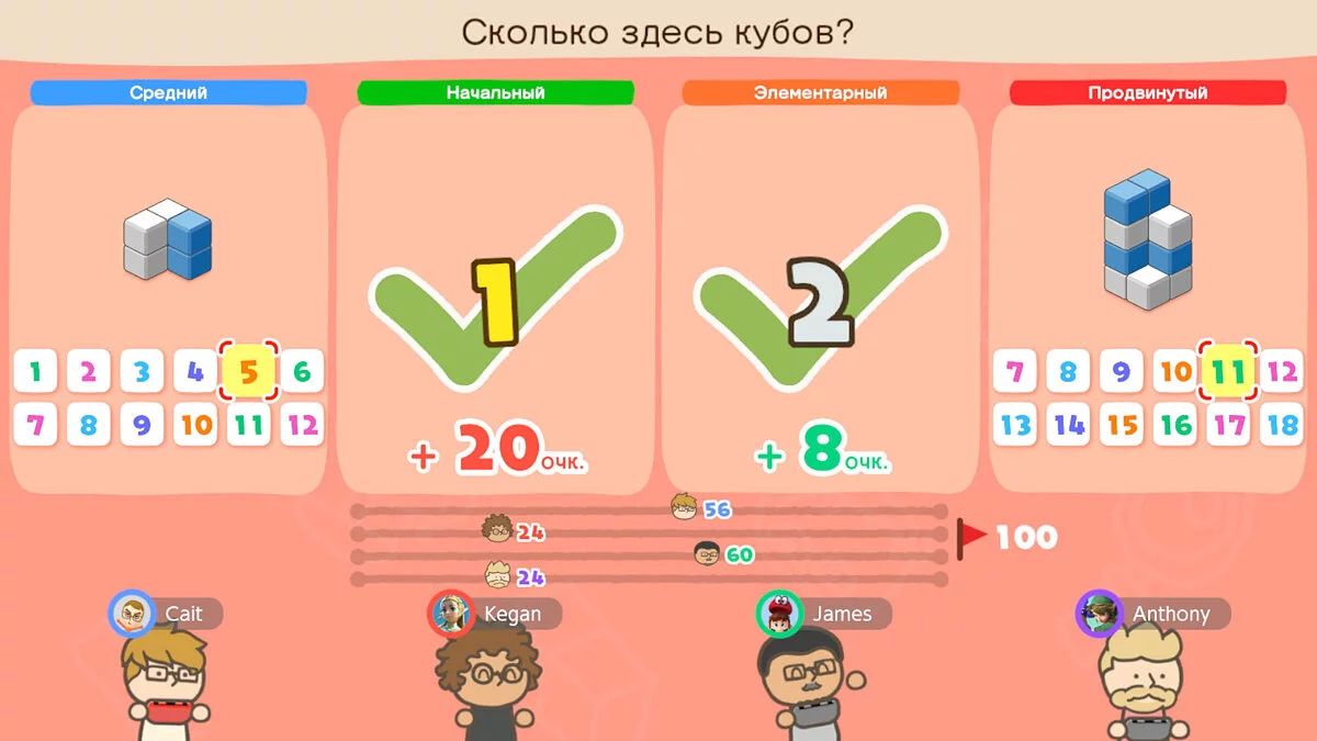 Одновременно играть могут до четырёх геймеров, которым предстоит быстро выполнять задания, чтобы заработать как можно больше очков. При этом каждый участник может настроить уровень сложности под себя.