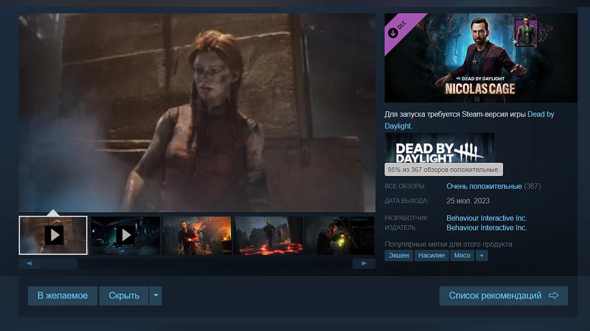 Игровые новости Новости видео «Вы покупаете ходячий мем» — для Dead by Daylight вышел набор с Николасом Кейджем, который привел в восторг геймеров