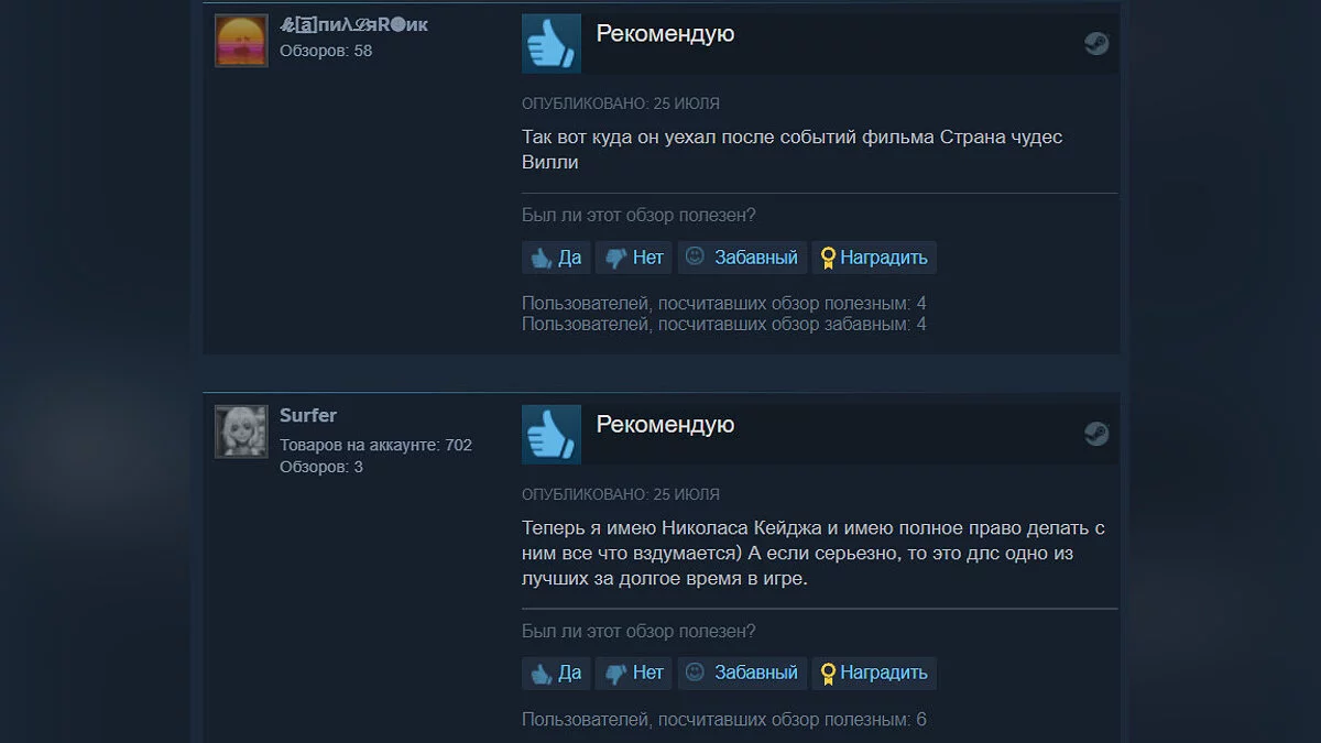 Геймеры в Steam очень положительно оценили дополнение. В первый же день рейтинг набора поднялся до 95%.