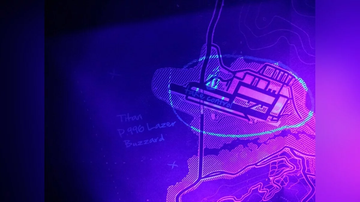 На светокопировальной карте есть ещё один секрет. Если обратите внимание на фото ниже, то увидите обведённый форт Занкудо и надписи «Take control» (захвати контроль) и «Titan, P.996 Lazer, Buzzard». Как можно помнить из GTA 4: The Ballad of Gay Tony, Buzzard — вооружённый до зубов ракетами и пулемётами Гатлинга вертолёт. P.996 Lazer — новое наименование истребителя.