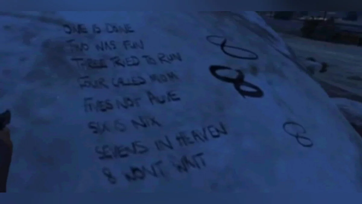 В Сэнди-Шорс можно найти послание на камне, а также многочисленные цифры «8» на прочих булыжниках. Послание гласит следующее: «One is done, Two was fun, Three tried to run, Four called mom, Five's not alive, Six is nix, Seven's in heaven, 8 won't wait.»