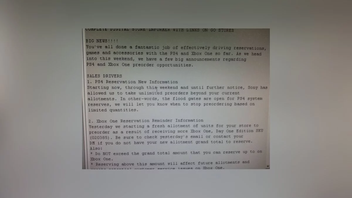 В письме, которое сегодня получил магазин GameStop, содержалась довольно интересная информация о консолях Xbox One и PS4. Ниже приведено письмо и его перевод.